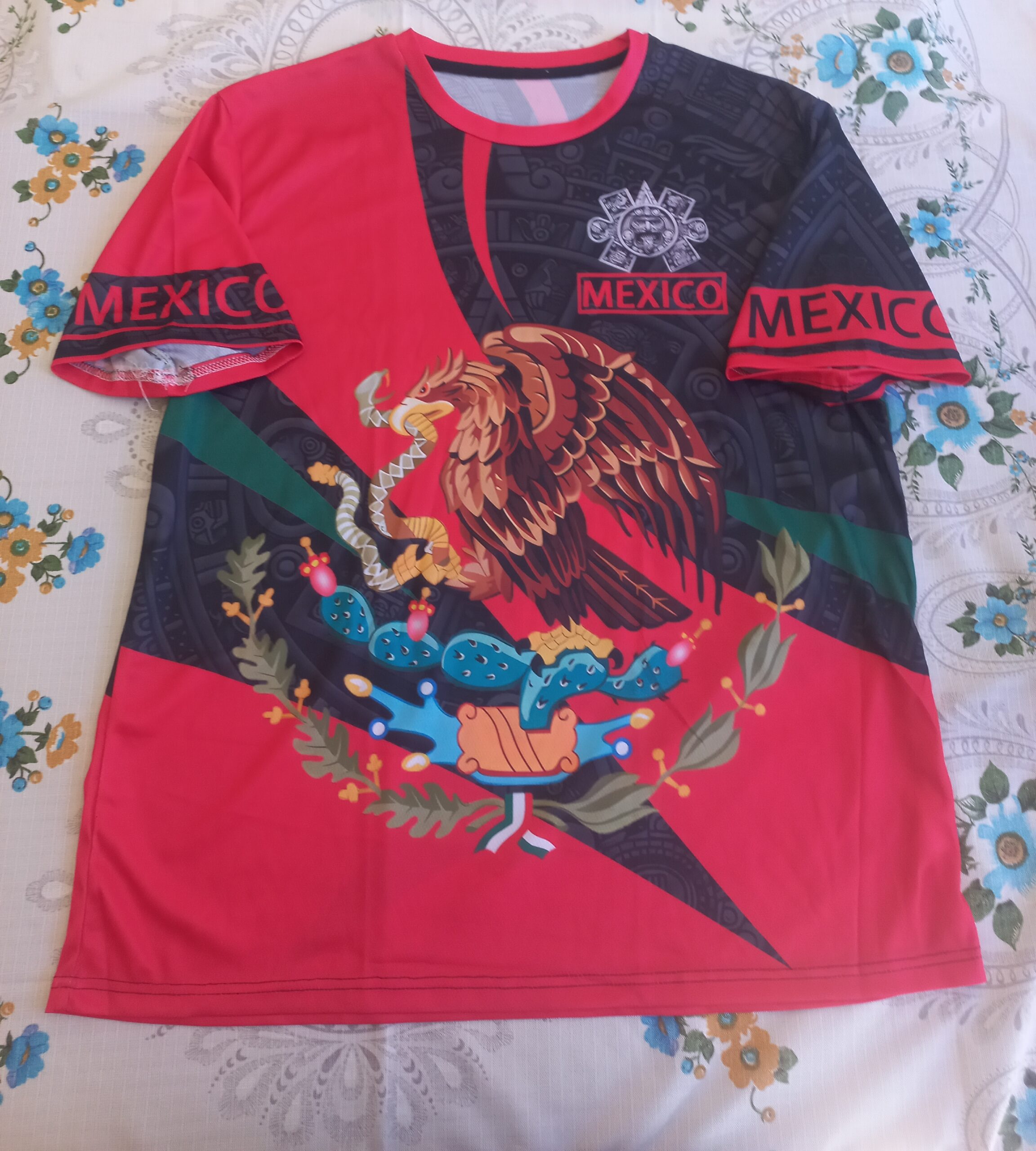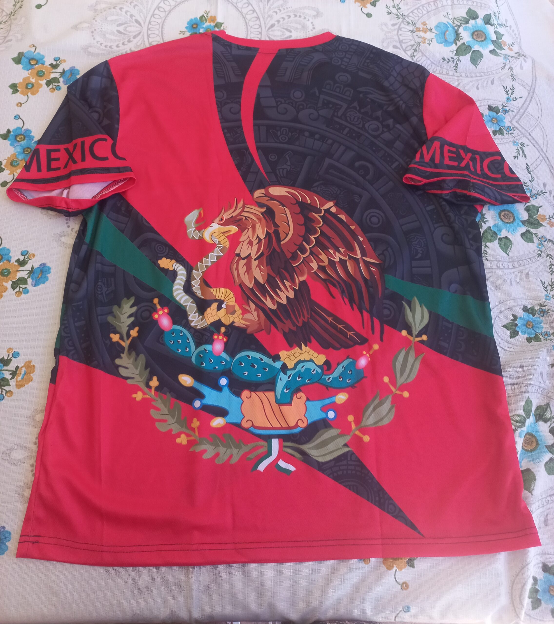 Las mangas llevan inscrito el nombre “México”, lo que refuerza el orgullo por la nación y le da un toque distintivo. Dependiendo del material de fabricación, la camiseta puede ser de algodón suave, mezclas deportivas o poliéster, brindando comodidad y transpirabilidad. Es una prenda versátil, ideal para eventos patrióticos, reuniones informales o simplemente para expresar el amor por la cultura mexicana.