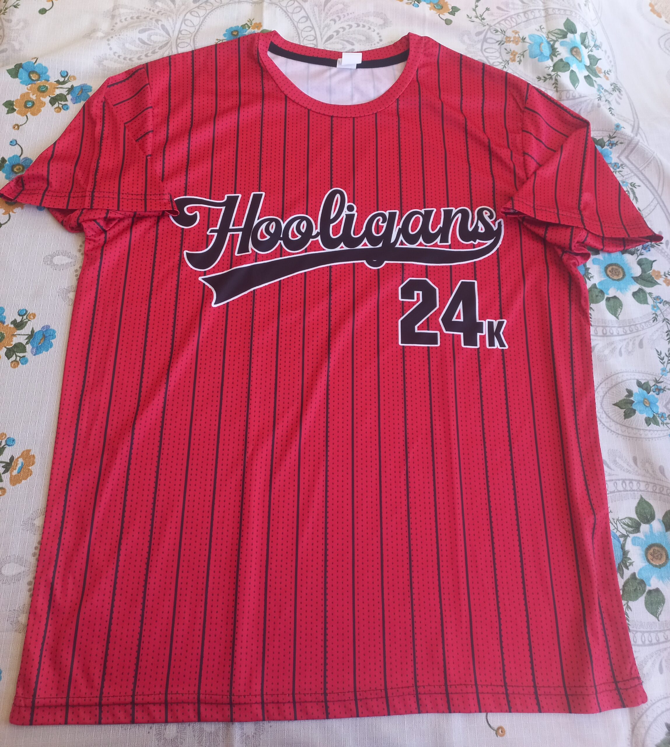 Una playera roja con líneas negras y estampado «Hooligans» junto con el número 24 es una prenda con una estética rebelde y audaz. Su diseño en rojo vibrante simboliza energía y pasión, mientras que las líneas negras añaden un toque de intensidad y fuerza visual. El contraste entre estos colores le da un aspecto dinámico y llamativo, ideal para quienes buscan destacar.