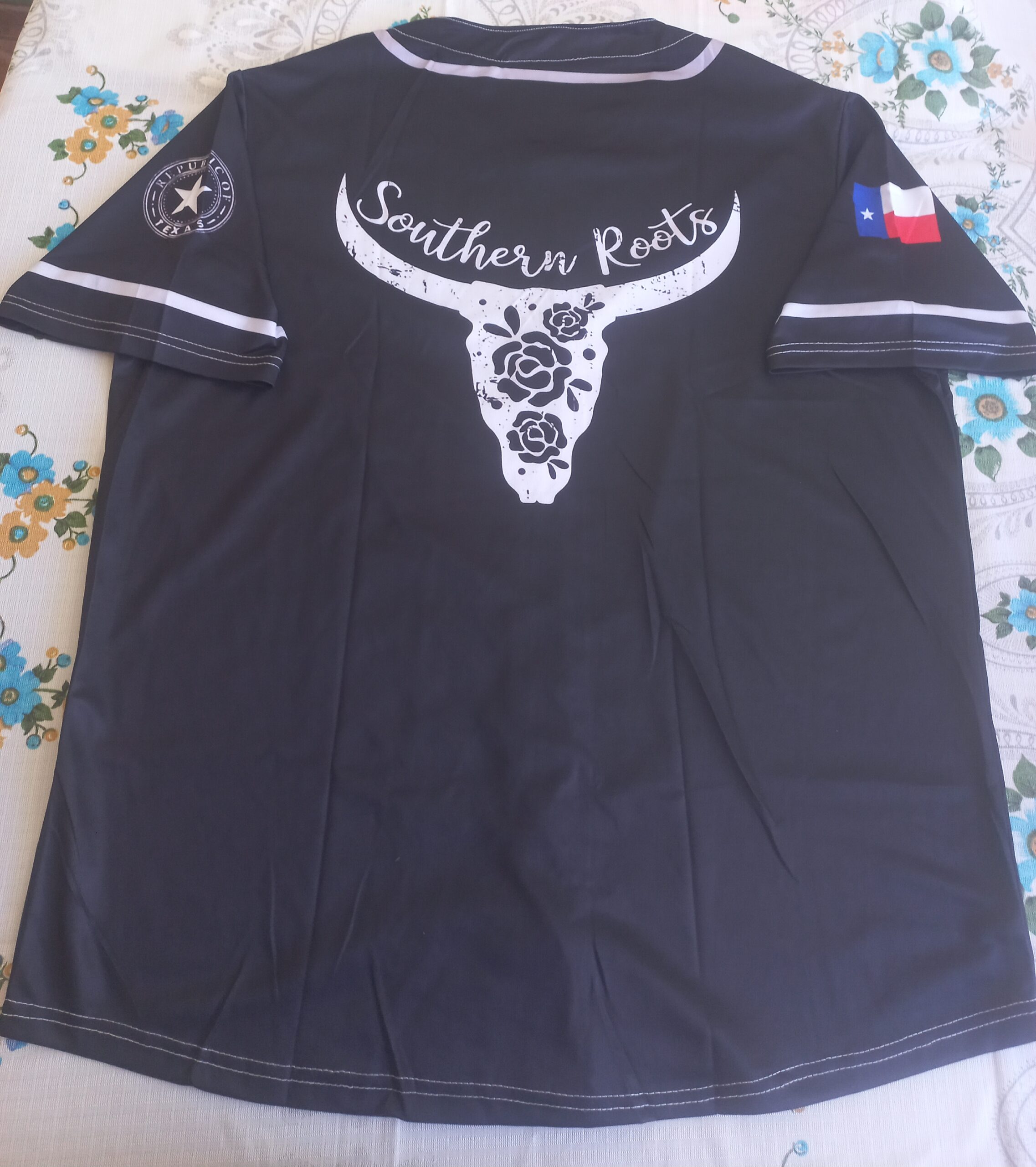 + Free ShippingPlayera negra de béisbol con estampado de toro y «Texas».