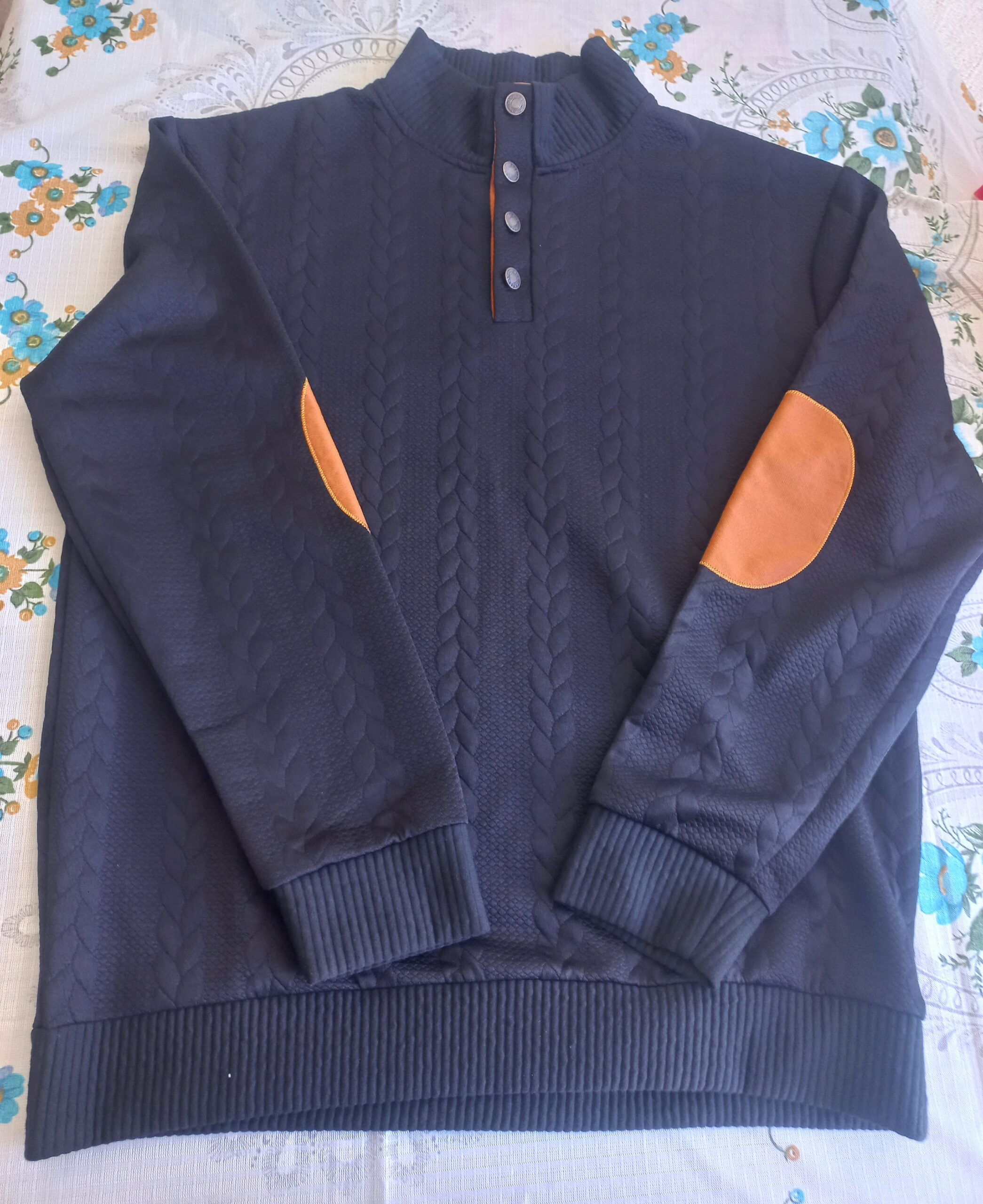 Un suéter con parche en los codos y tres botones en el cuello es una prenda elegante y funcional con un toque clásico. Generalmente, está confeccionado en tejidos suaves como algodón o lana, brindando comodidad y calidez. Los parches en los codos, hechos de materiales como cuero o gamuza, añaden durabilidad y un estilo refinado.